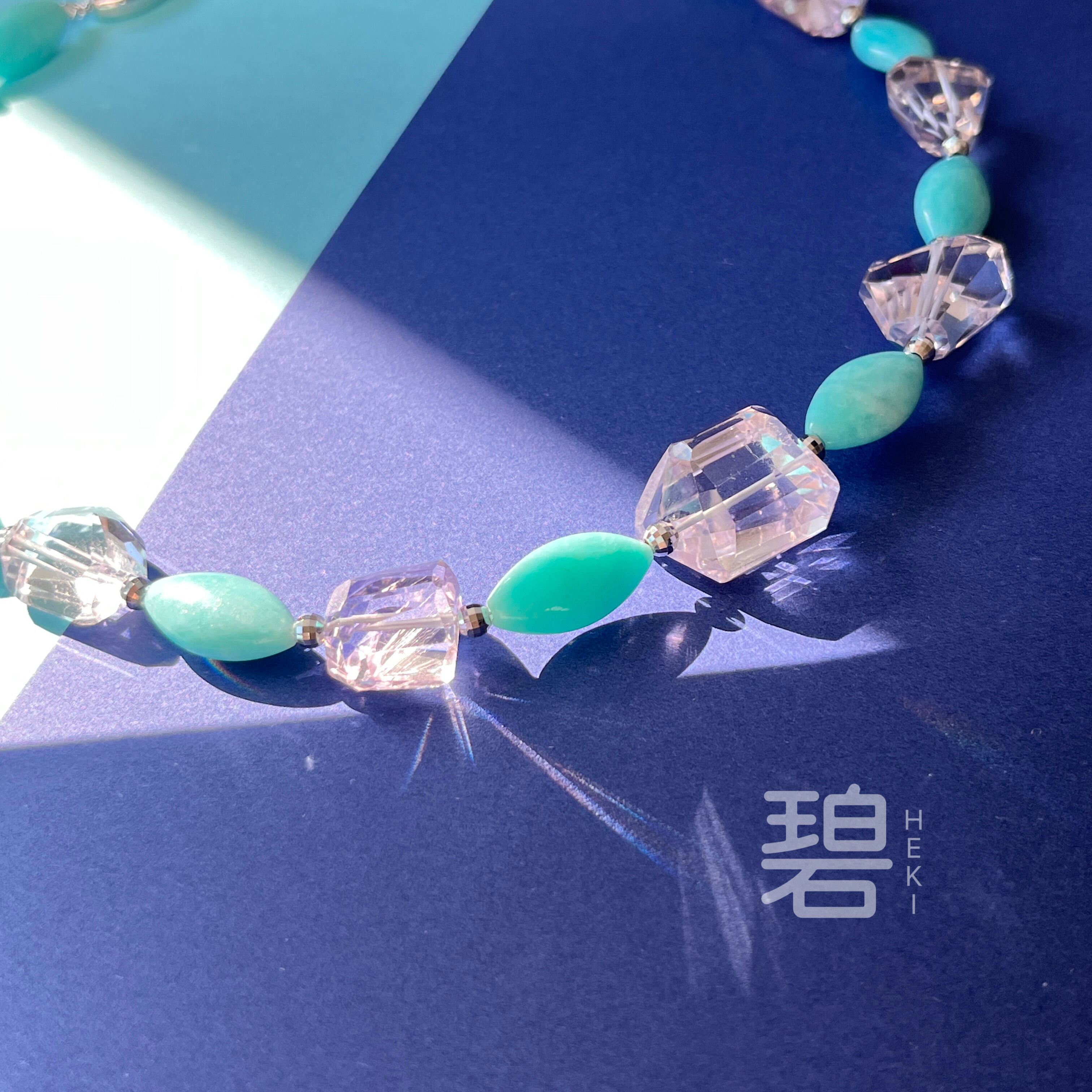 【碧】アマゾナイトとアメジストネックレス/天然石/アマゾナイト/天河石/ピンクアメジス/オリジナルデザイン