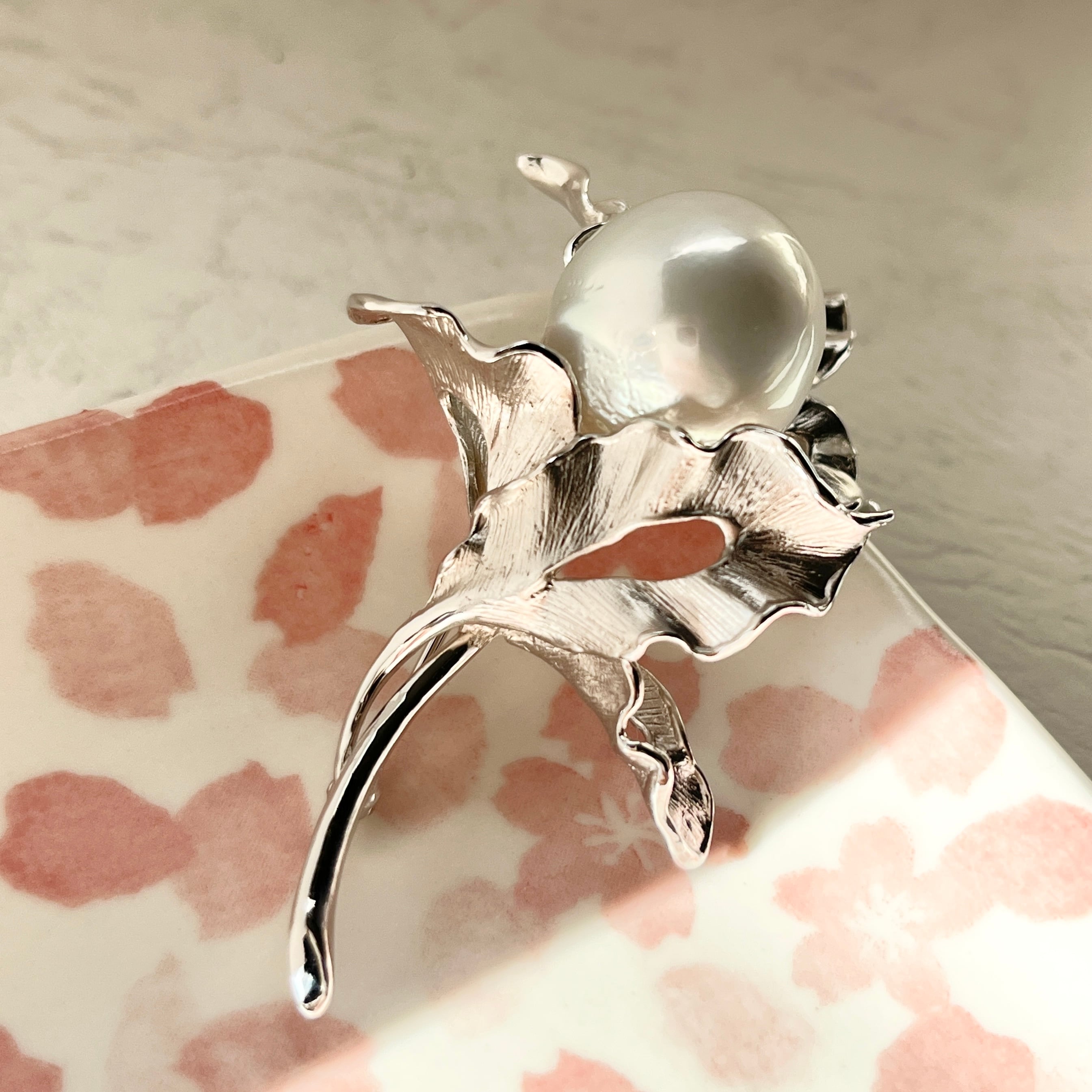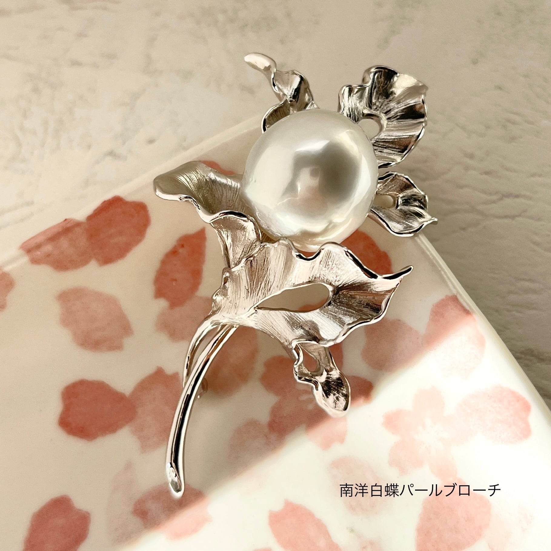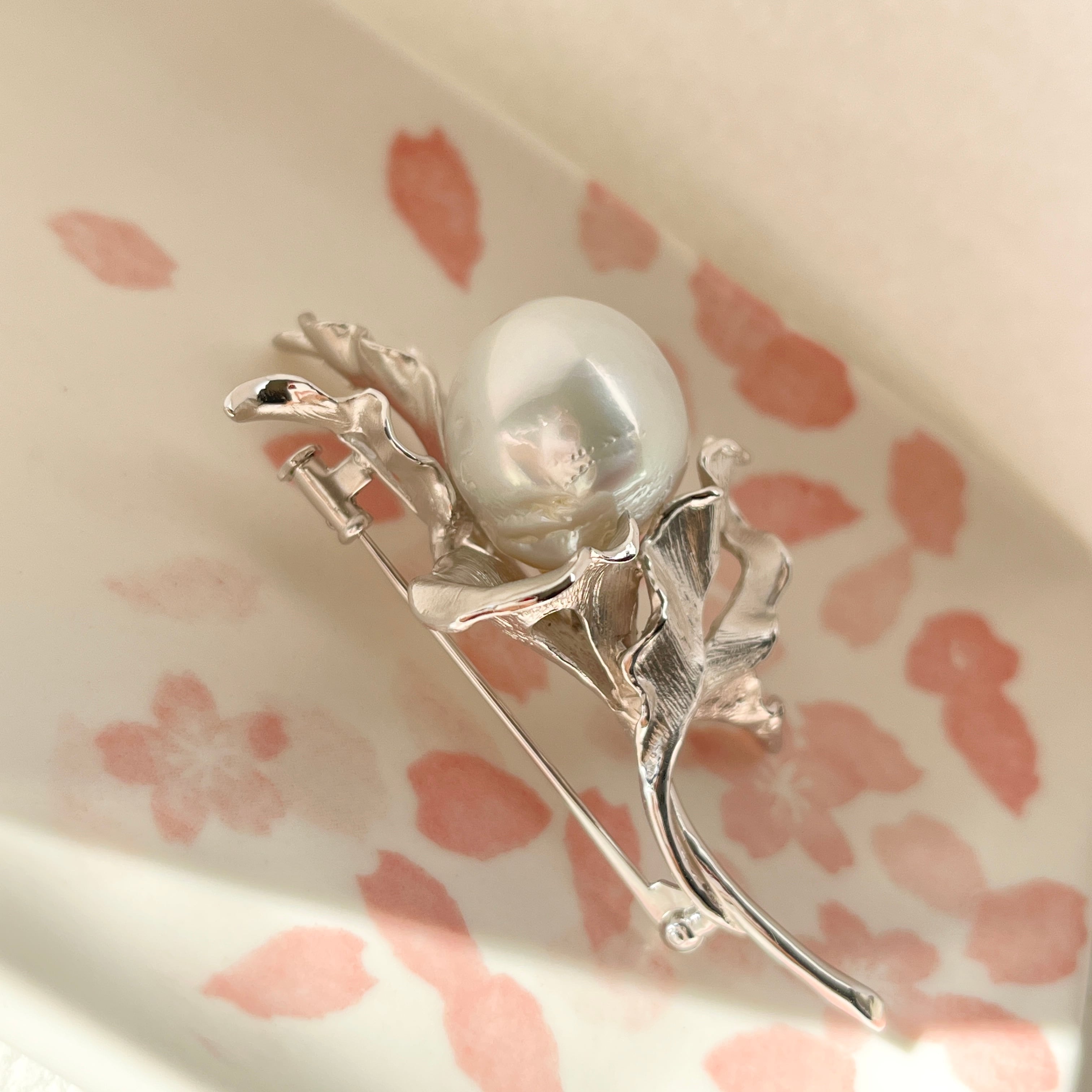 南洋白蝶パールブローチ/17-18mm/バロックパール/大粒/シルバー/日本工芸