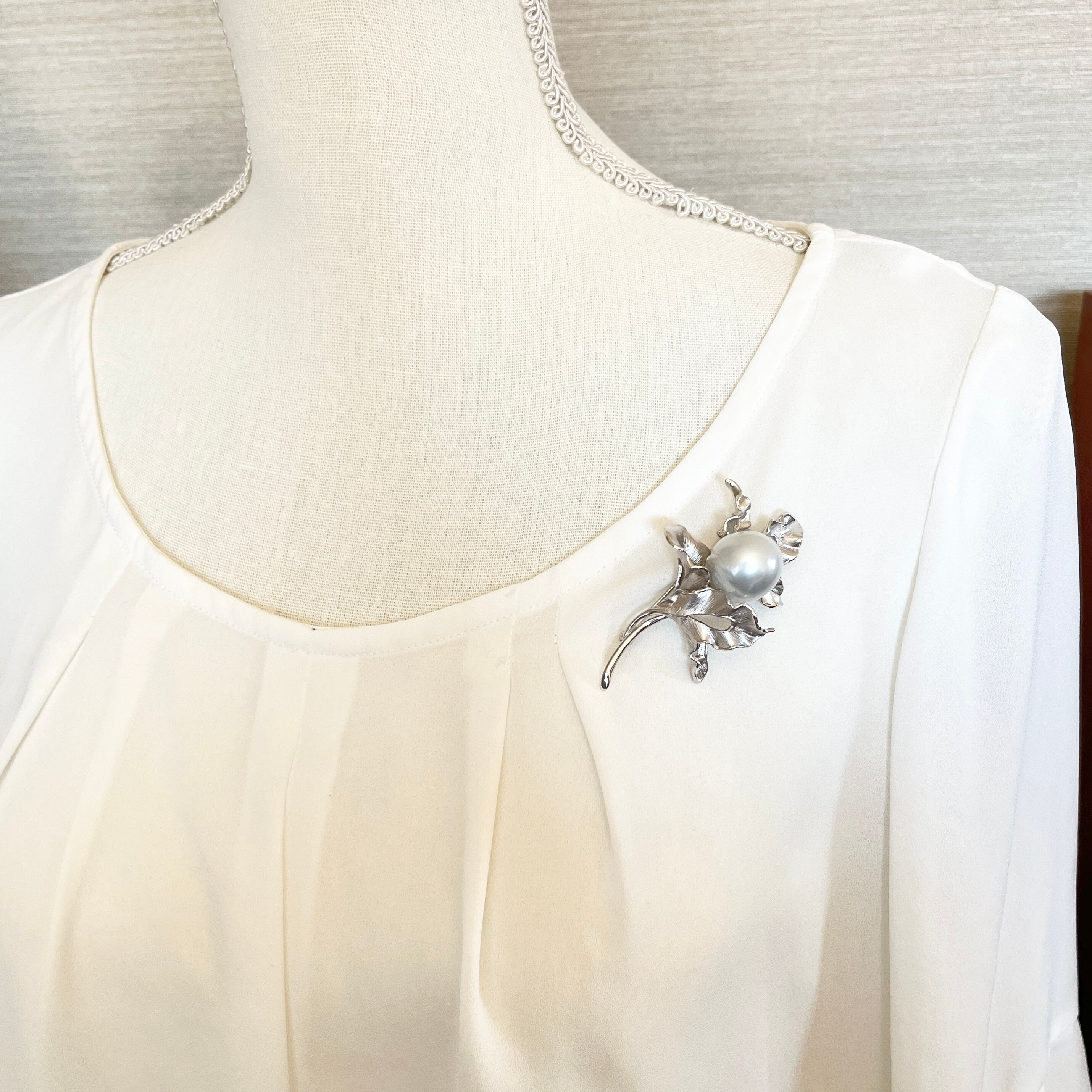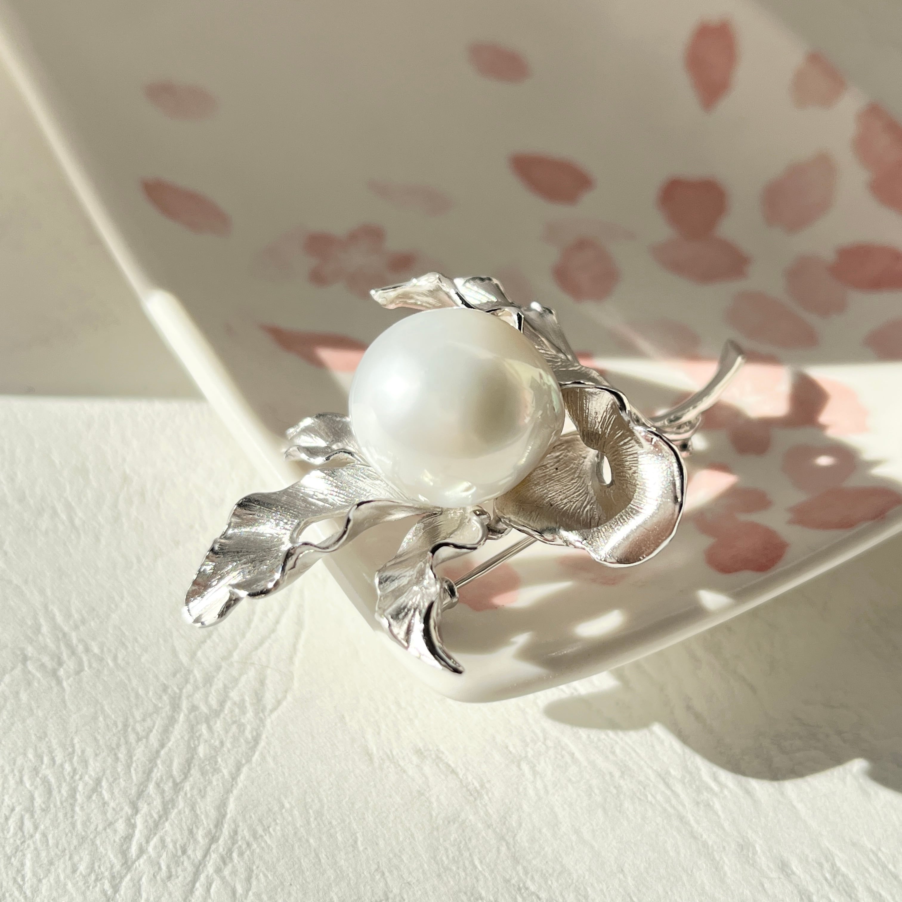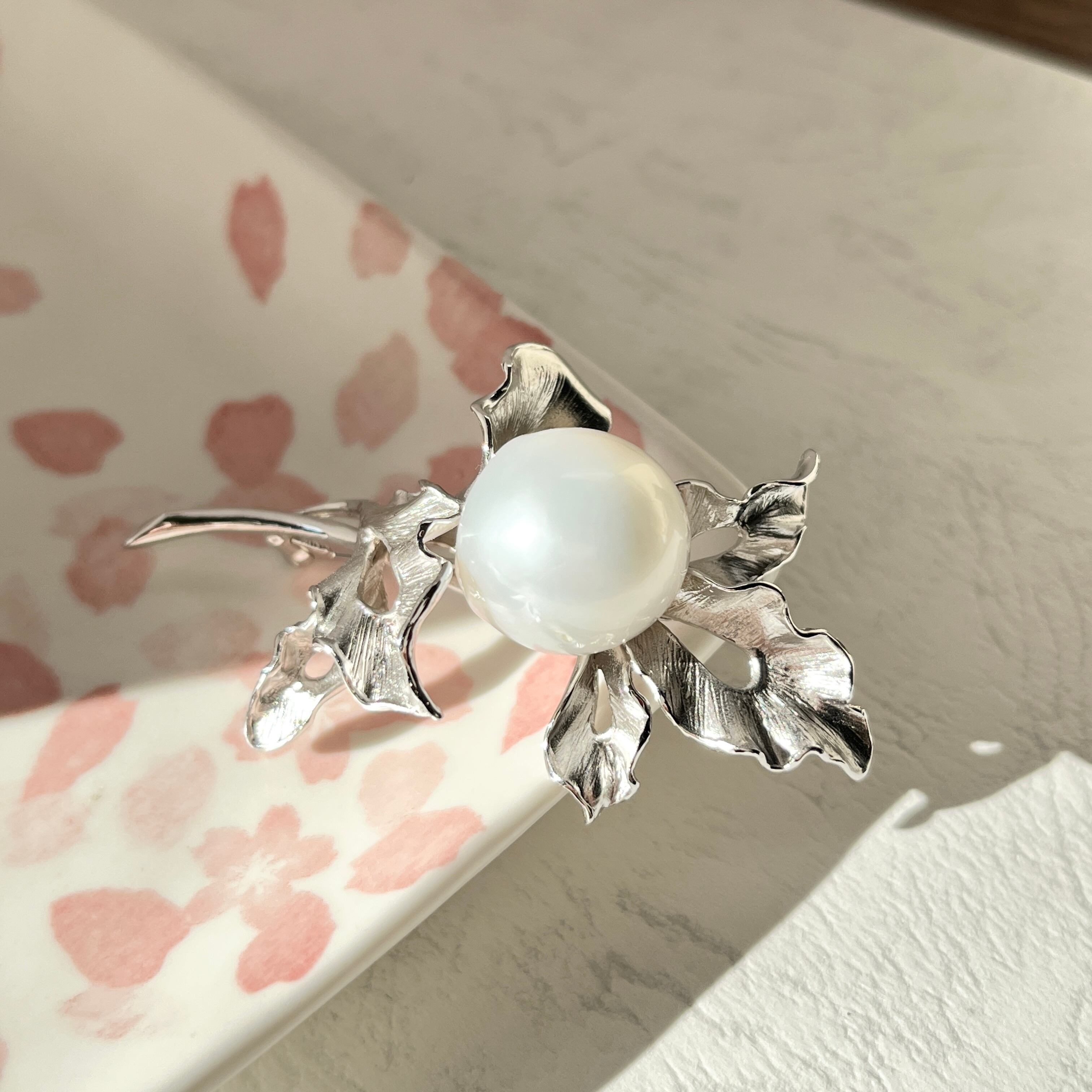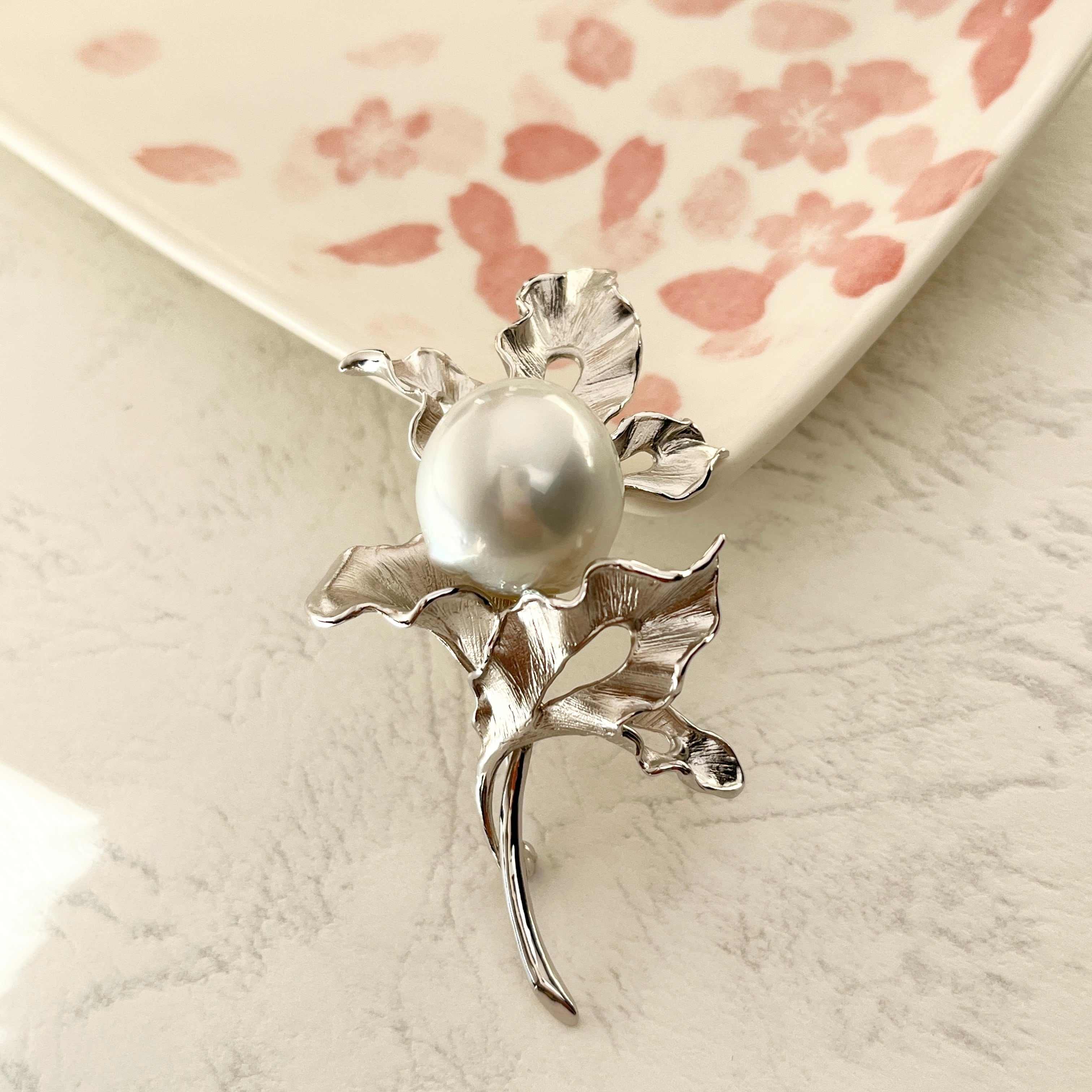 南洋白蝶パールブローチ/17-18mm/バロックパール/大粒/シルバー/日本工芸