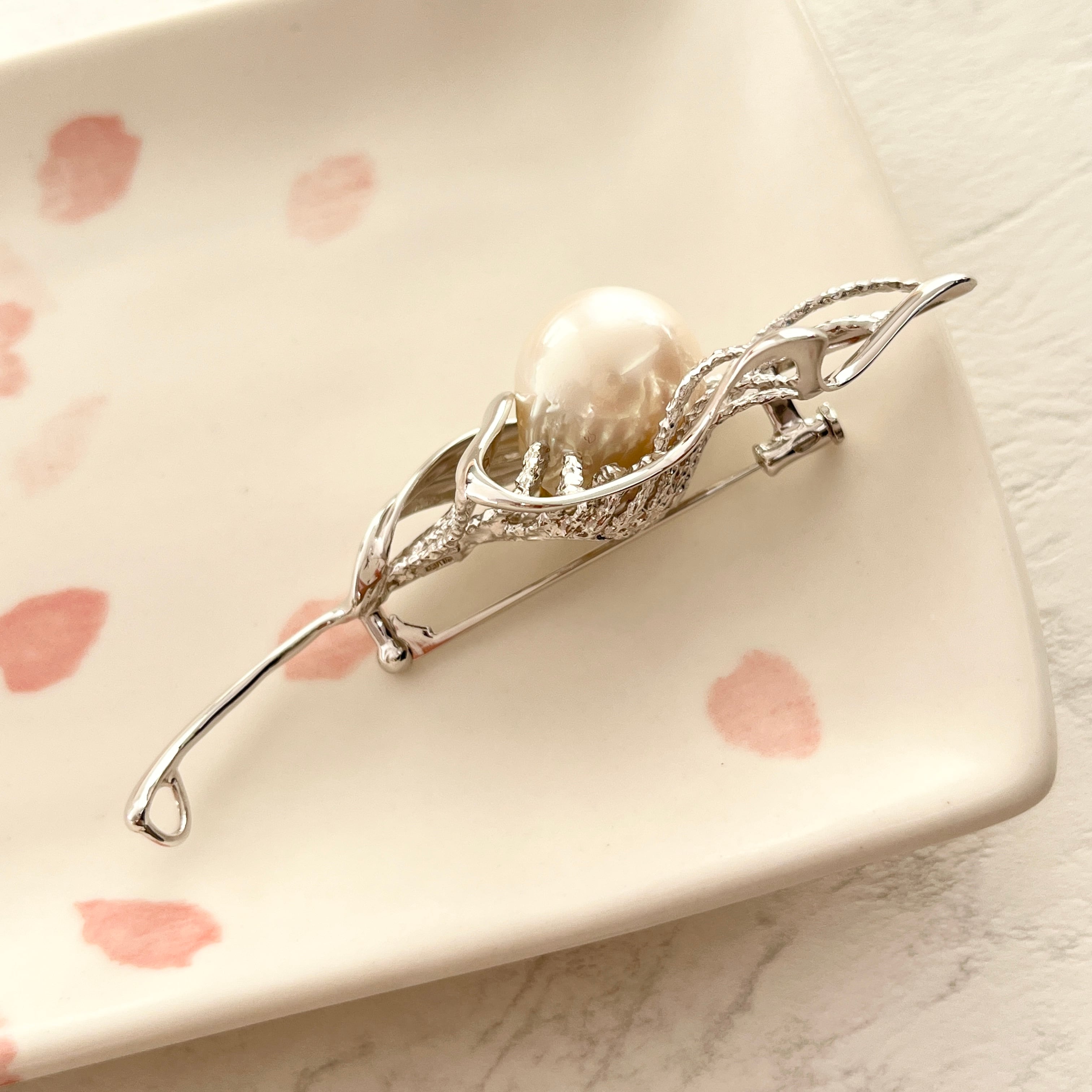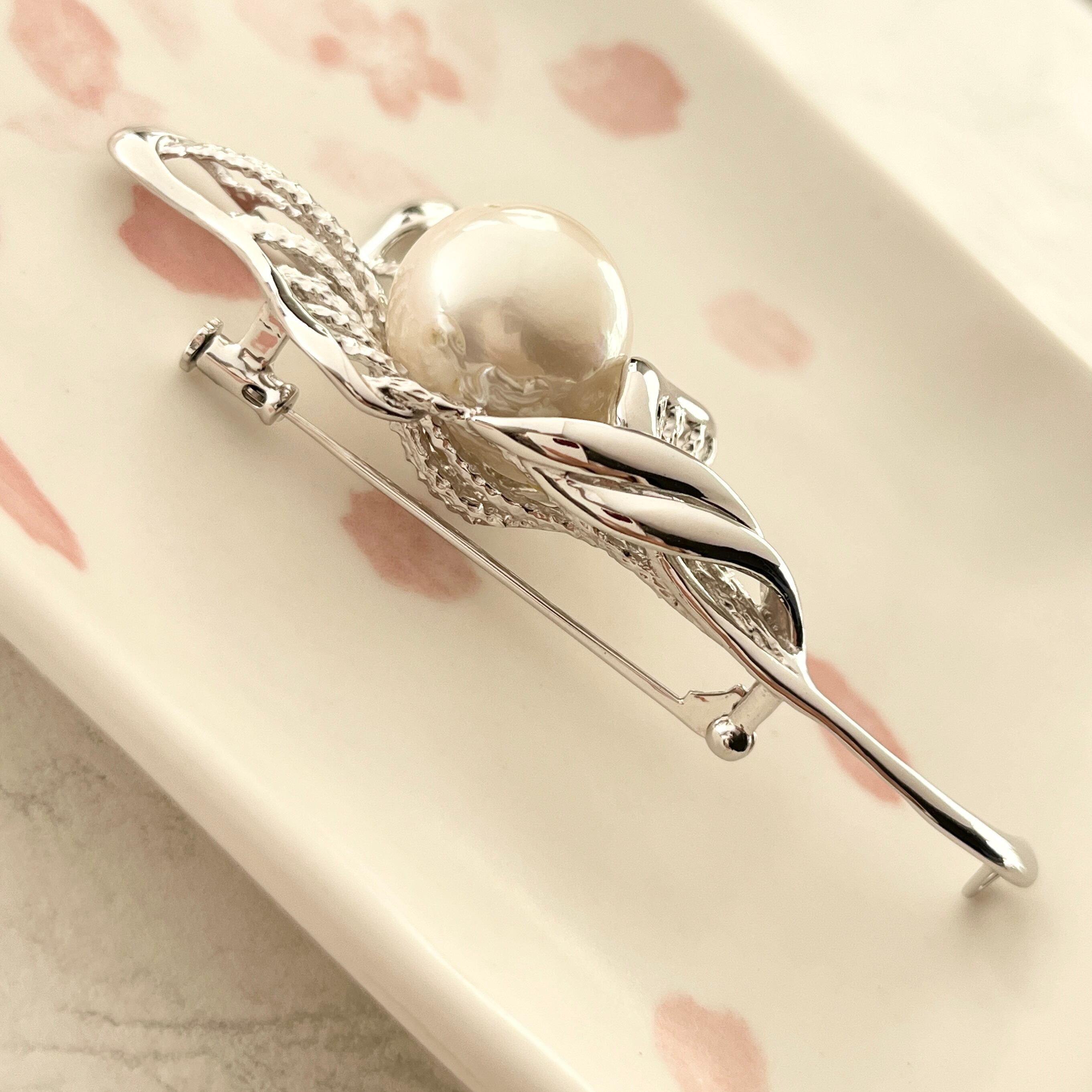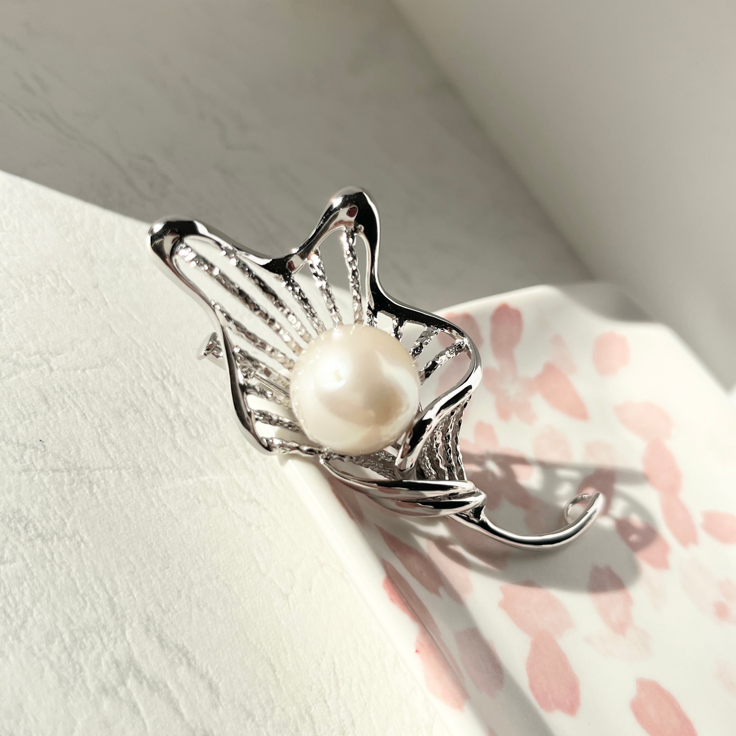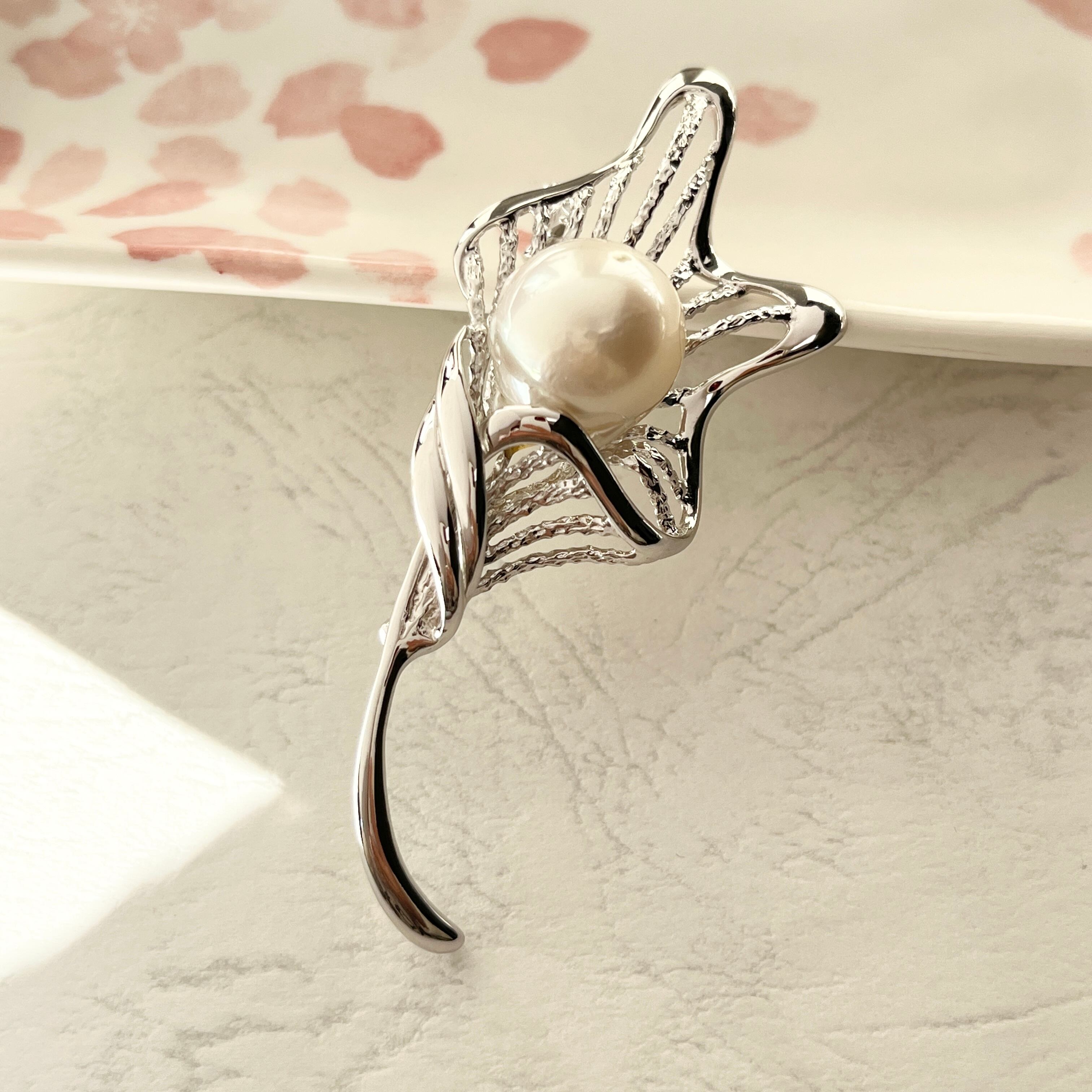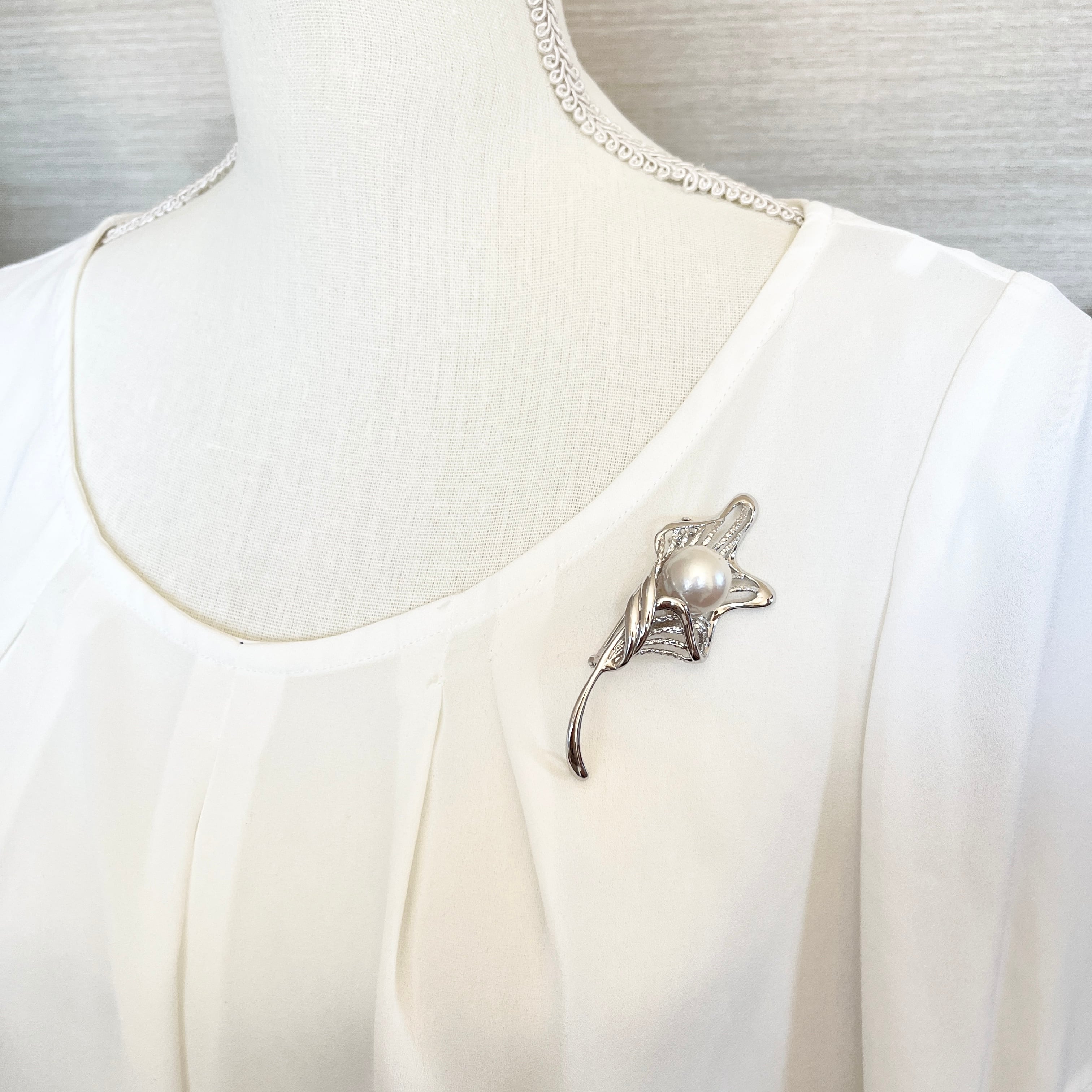 南洋白蝶パールブローチ/15-16mm/バロックパール/大粒/シルバー/日本工芸