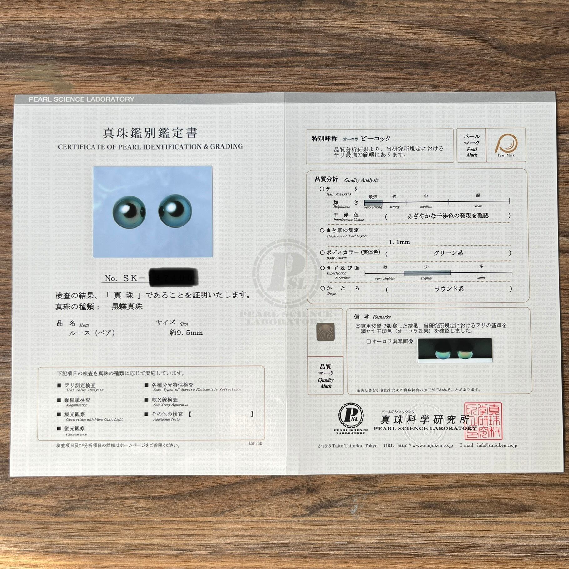 【その他】真珠科学研究所鑑別書付き、テリ最強ピーコック