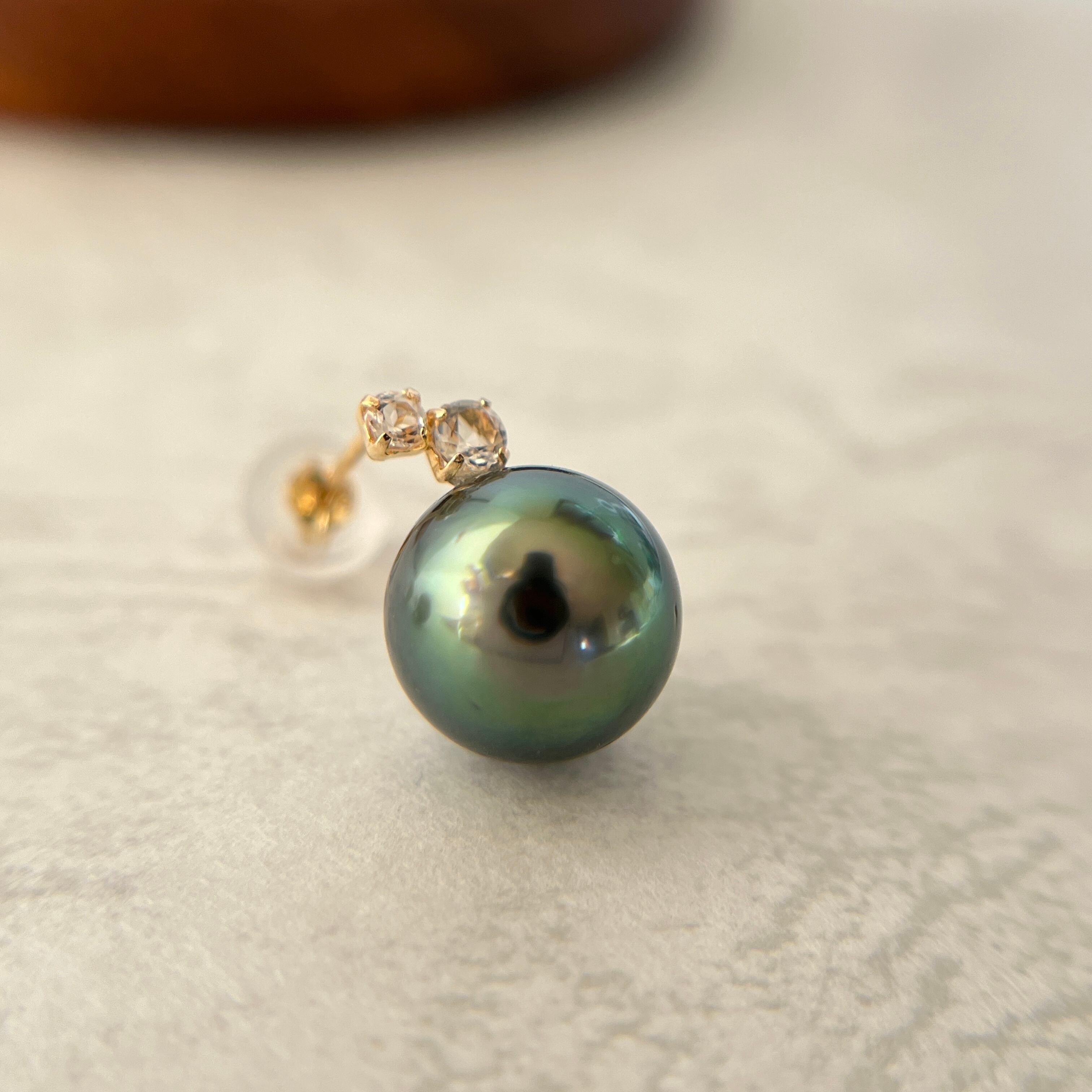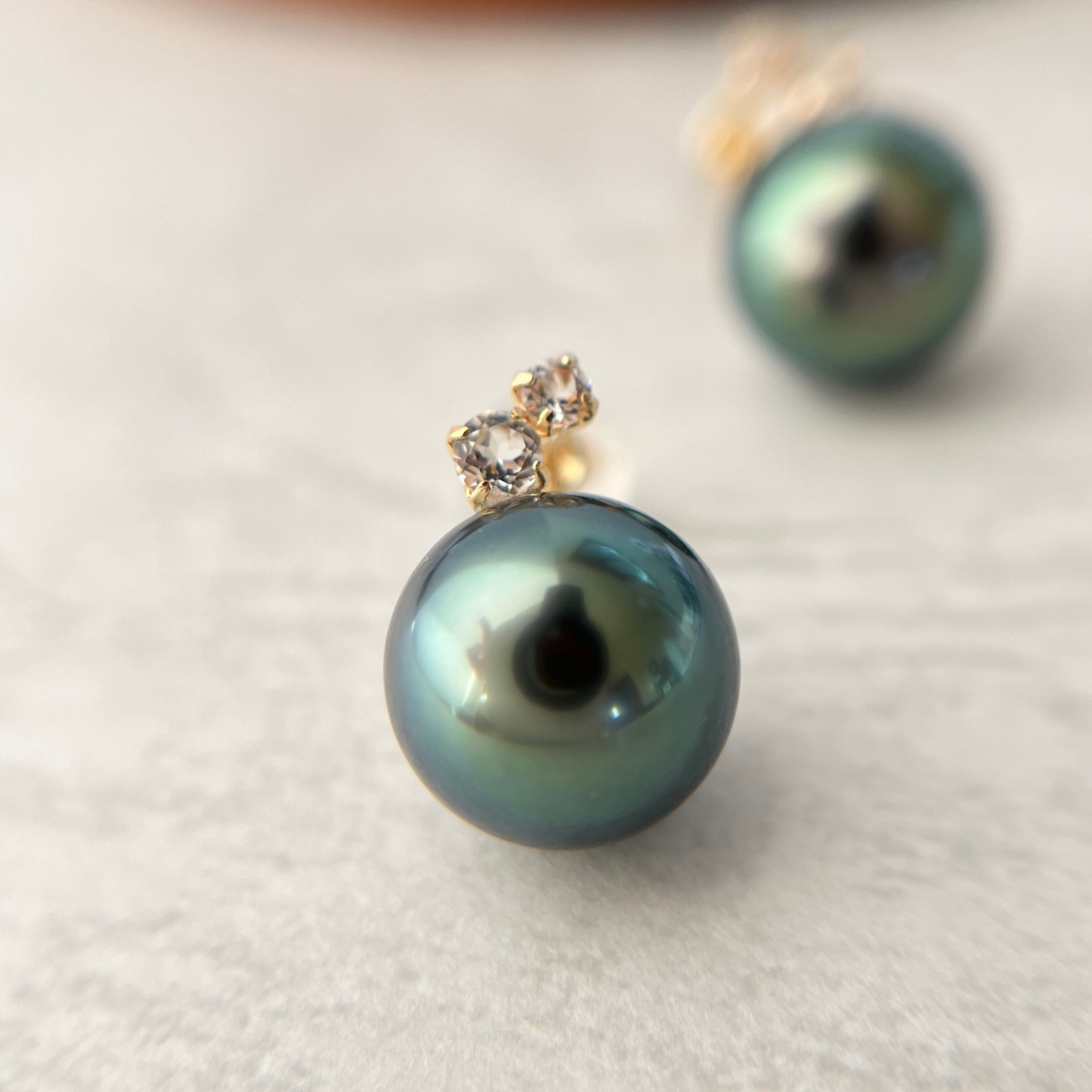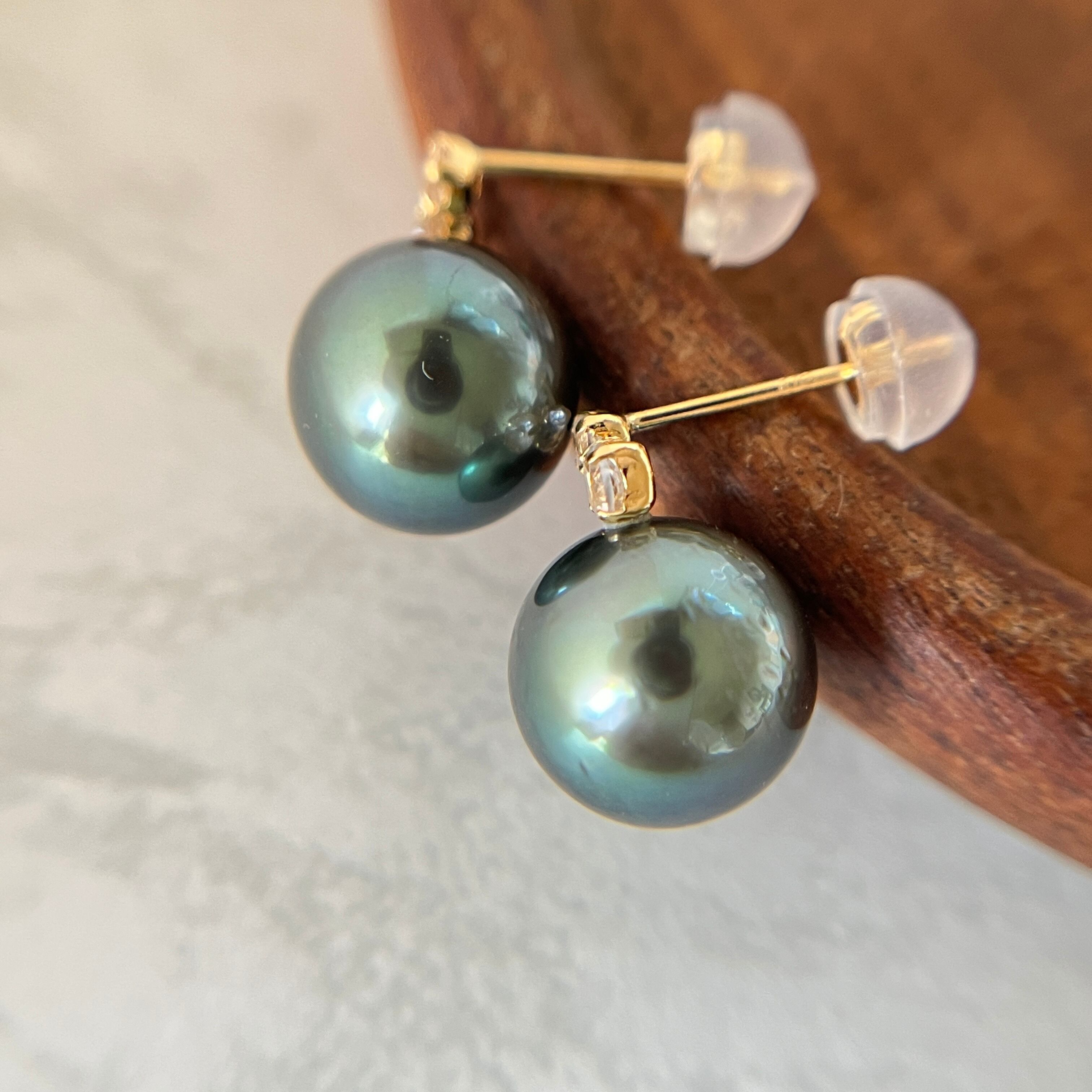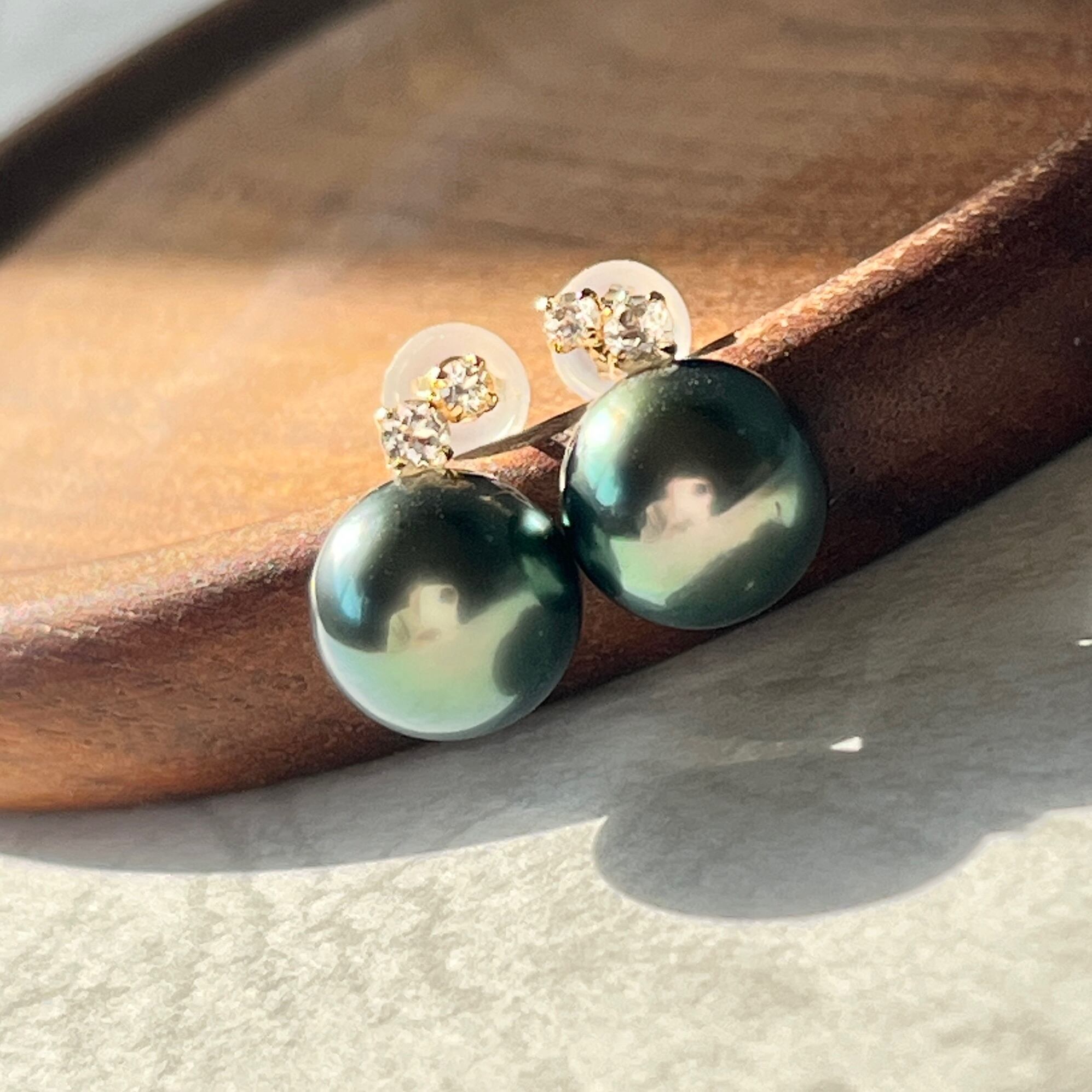 ♥️ 神秘的なグリーンの干渉色が美しく浮かび上がる、タヒチ産黒蝶真珠ピアスです。ひと目で上質とわかる、艶やかで奥行きのある輝きが魅力です。光の当たり方で表情を変えるパールは、身につける人の魅力を引き立て、洗練された印象へ。